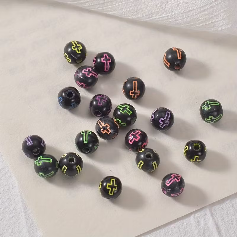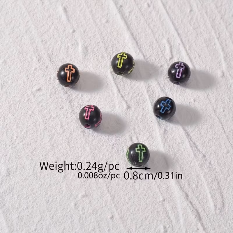 Akrylpärla med kors, 8mm - 25 st