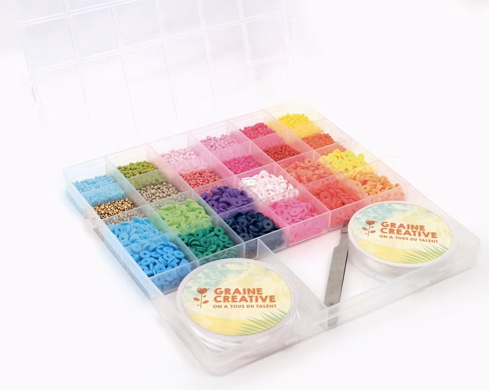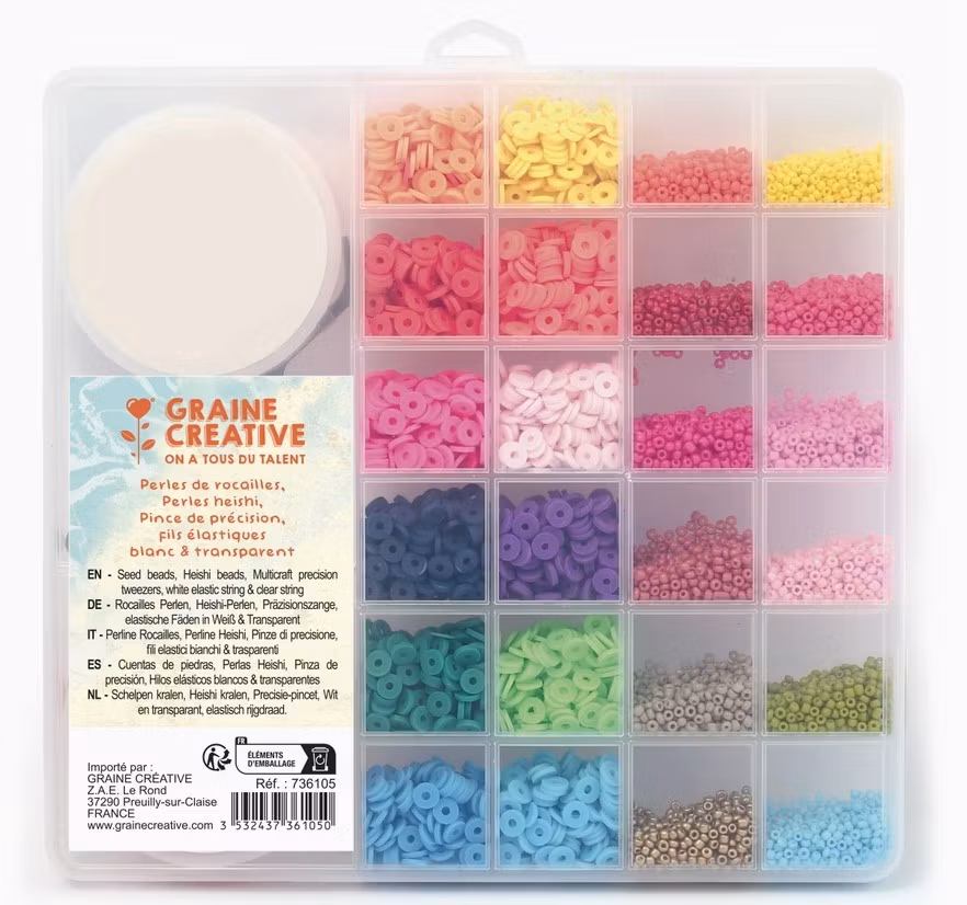 - Fylld med 24 olika pärlor, 12 sorter av seed-beads och 12 sorter av heishi-pärlor