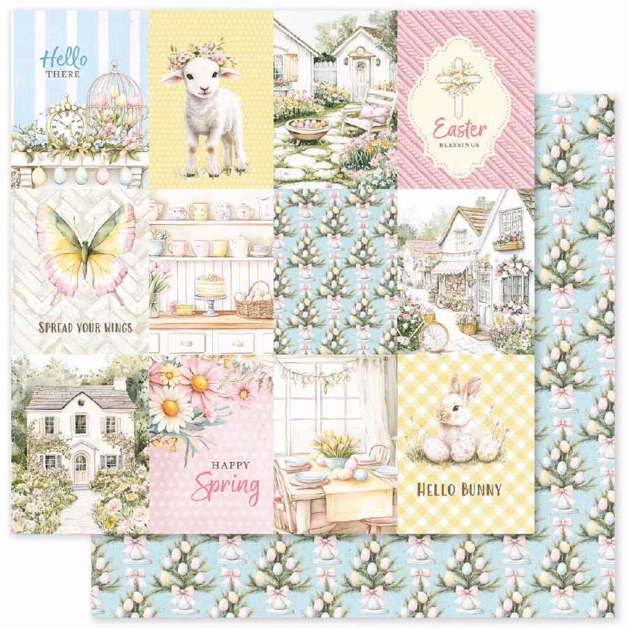 Välkomna våren till ditt kreativa utrymme med Bunny Hollow, den här kollektionen är full av påskcharm och säsongsbetonad glädje. Pappren i kollektionen är målade i milda pastellfärger av blått, rosa och gult, och visar upp blommande vårblommor och dekorativa påskägg tillsammans med en lekfull tomte och fladdrande fjärilar.
