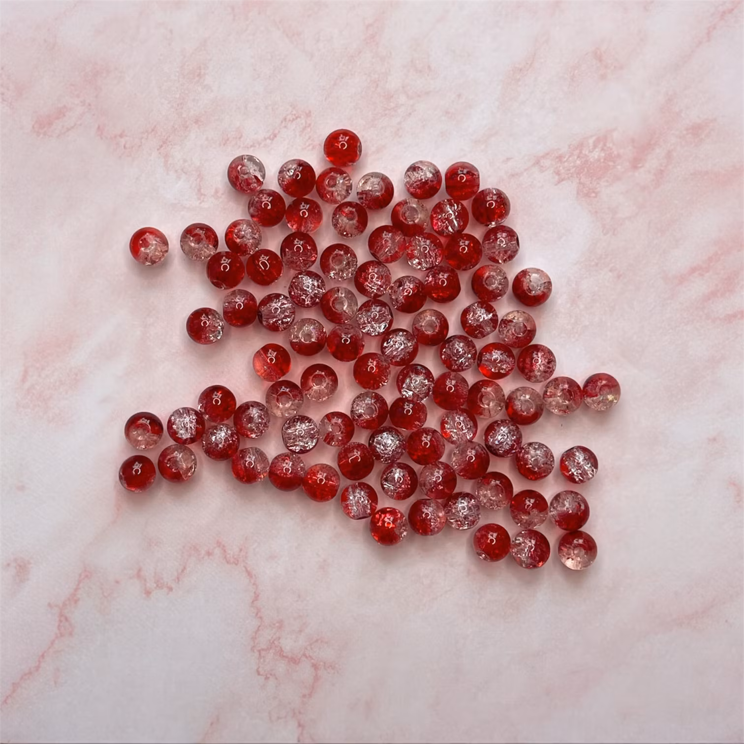 Glaspärla, röd/vit, 8mm - 50 st