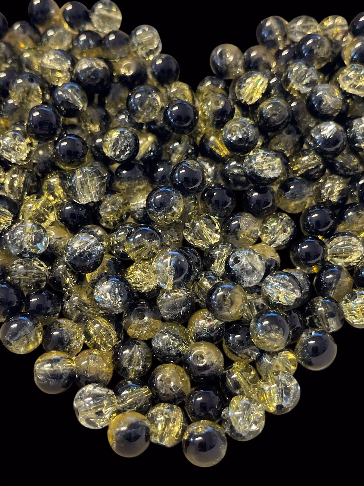 Sprucken glaspärla, 8mm, gul/svart - 50st