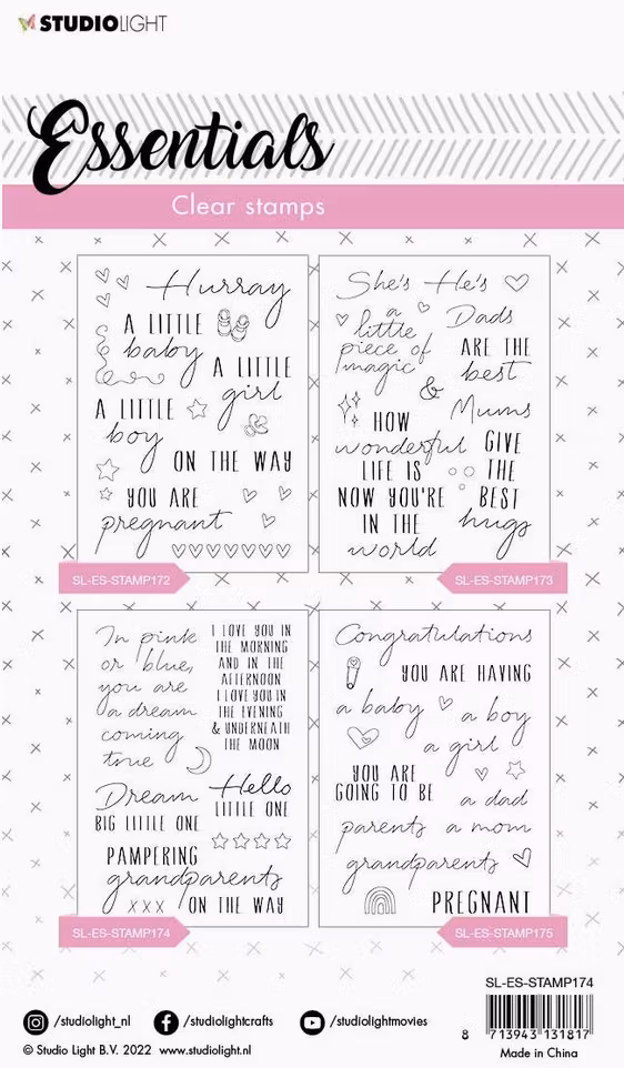 Studio Light Clear Stamps är tillverkade av polymer, vilket gör dem mjuka, texturerade och lätta att hantera.